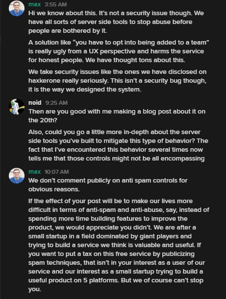 - On November 16th, Max responded to the initial chat after a posting I made on Twitter about disclosing the issue: